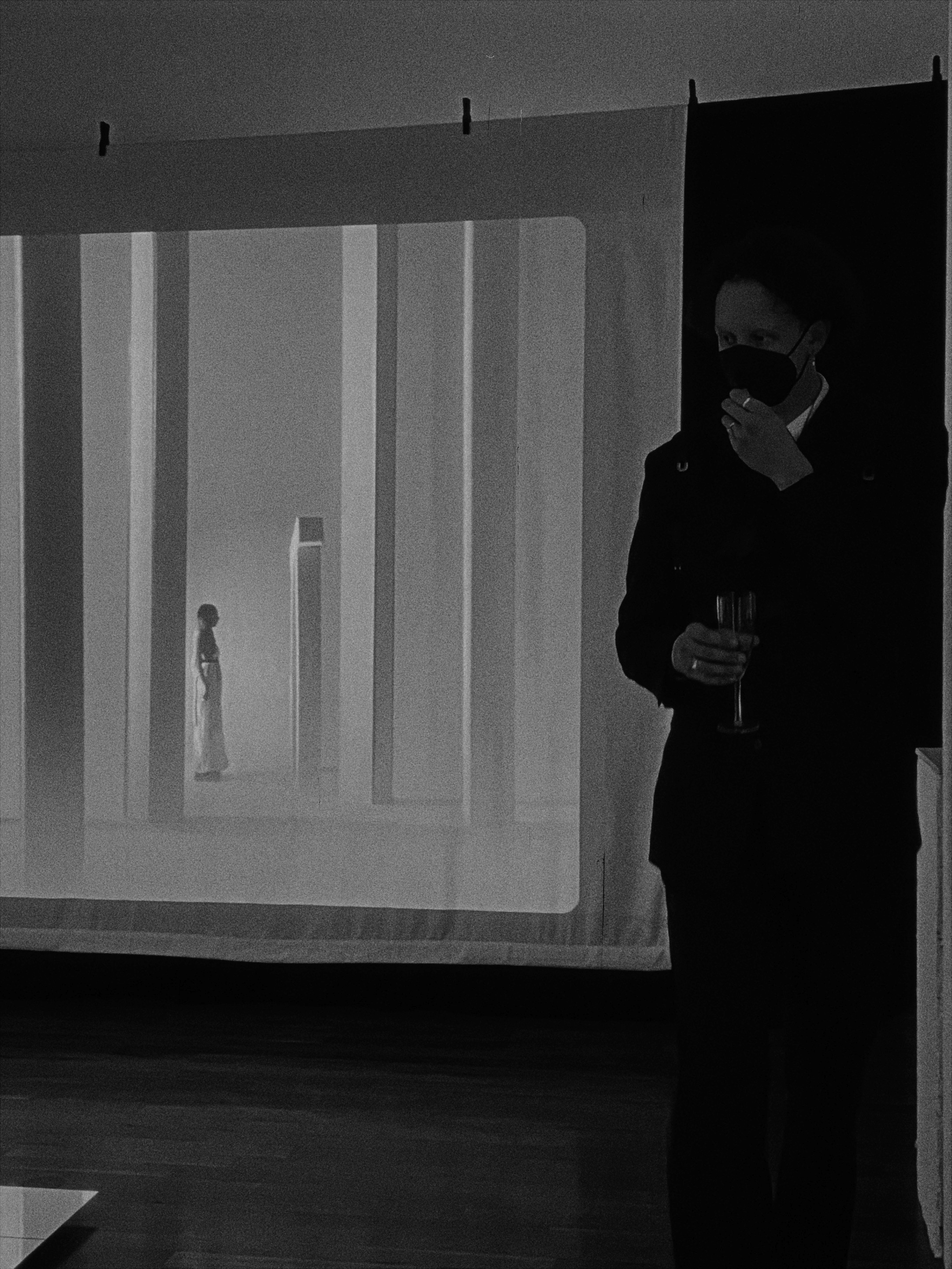 Together with architect Martha Granzeier, we built cardboard models. In postproduction we assembled recordings of the models with recording of the protagonists together to create a new environment.